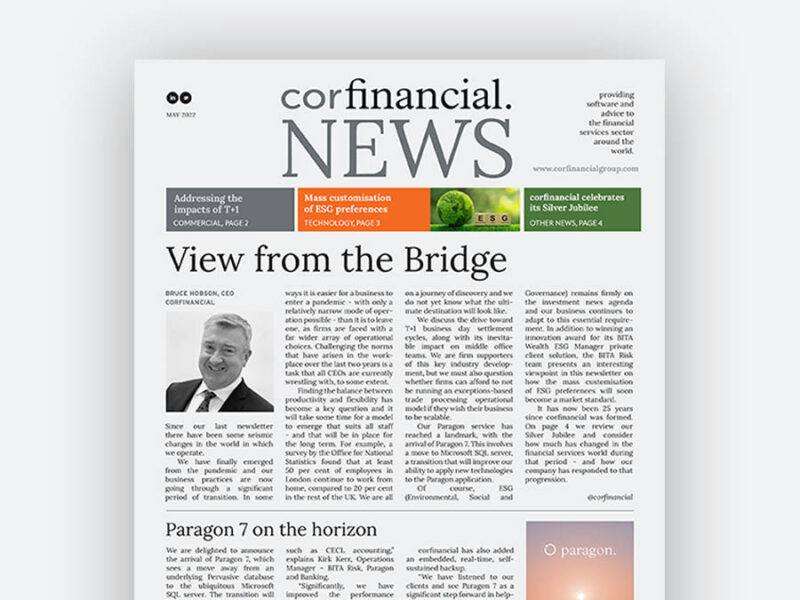Welcome to corfinancial NEWS – May 2022 Find out about our latest product, client and people news.Click the NEWS to read now.